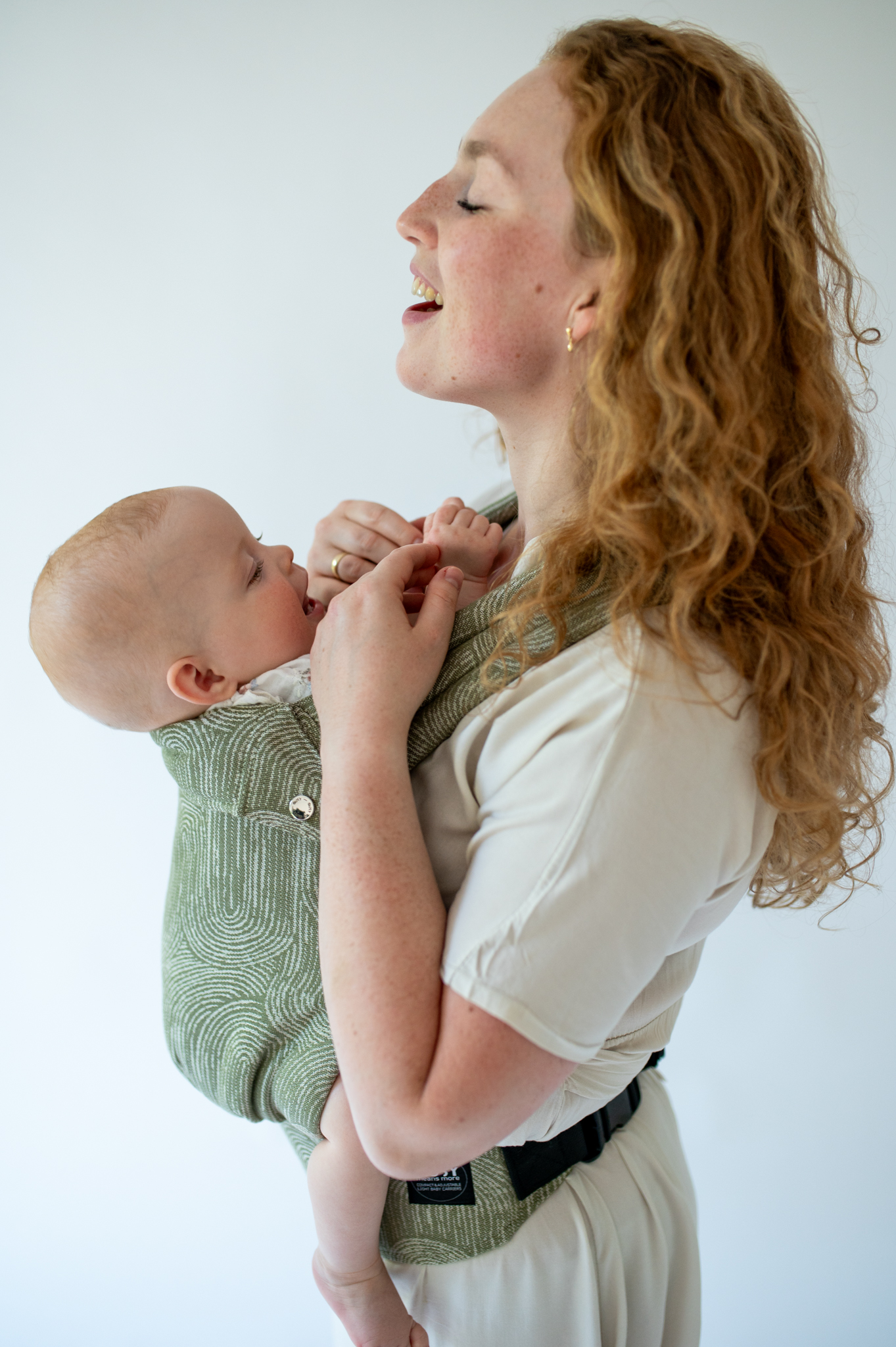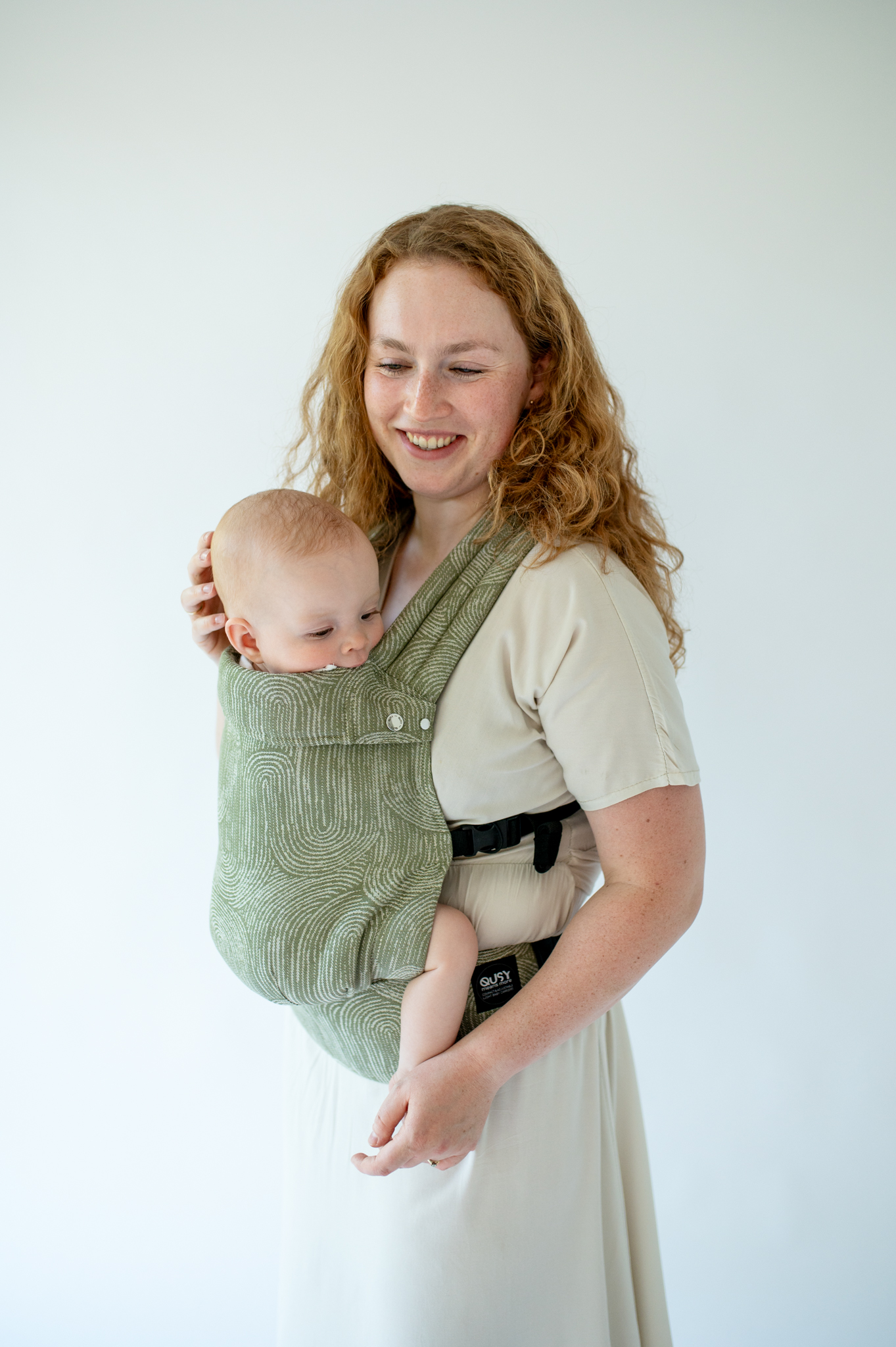 "Qusy has dispelled the spell of babywearing! I always got lost in all the adjustments and straps, and it was simply uncomfortable. This one is completely different! A huge plus for the unique, beautiful designs! I highly recommend it as a first and subsequent baby carrier."