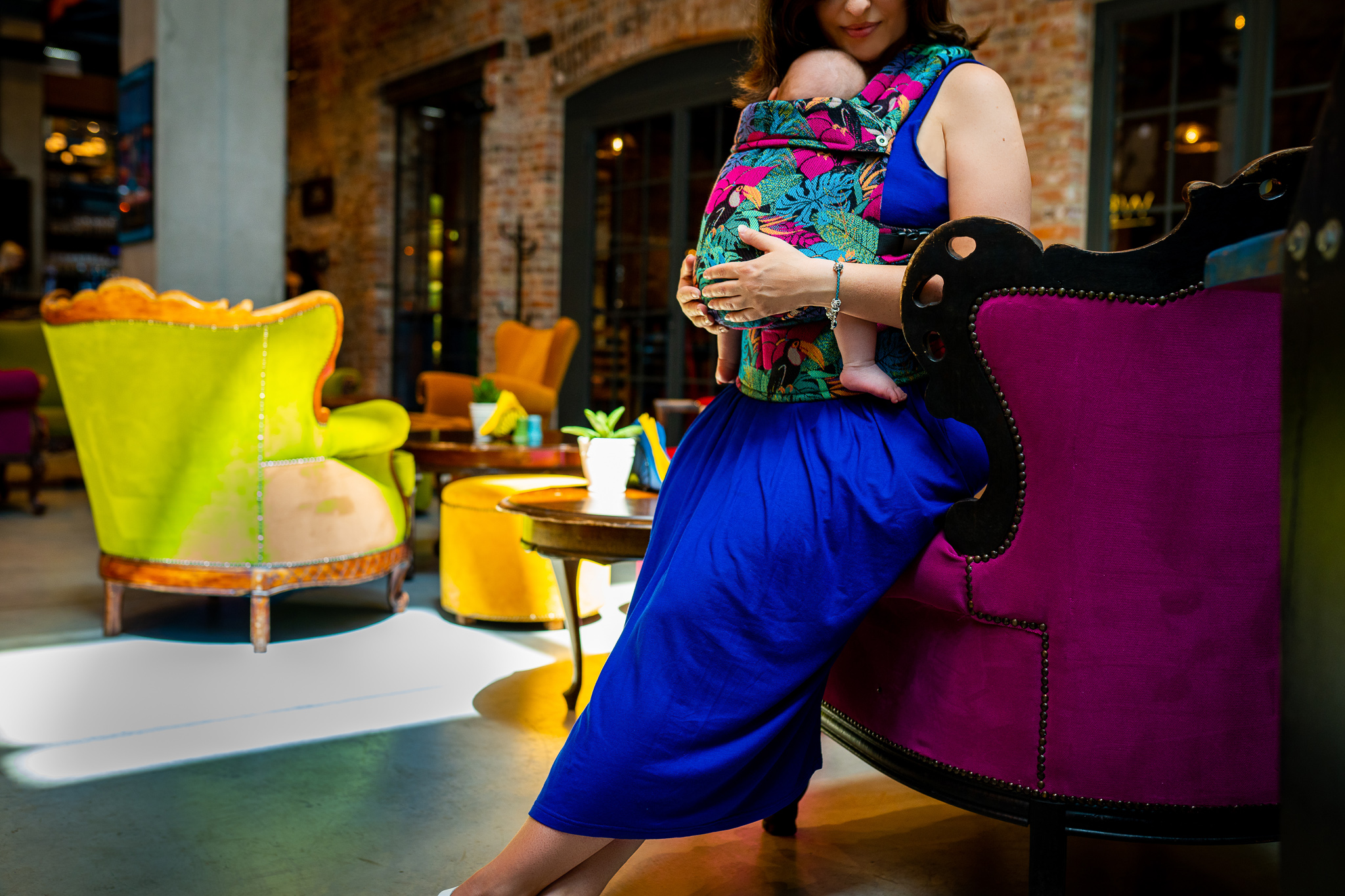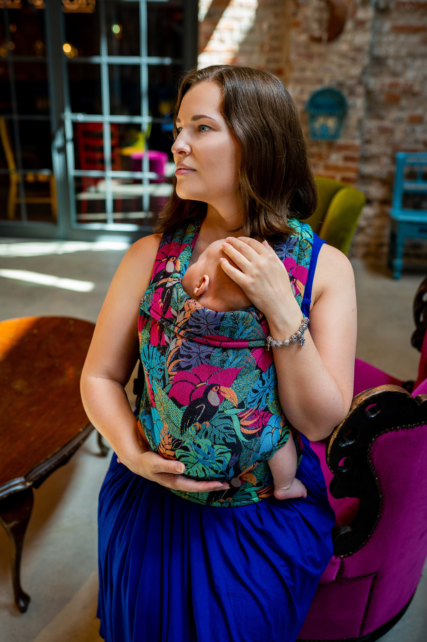 "Qusy has dispelled the spell of babywearing! I always got lost in all the adjustments and straps, and it was simply uncomfortable. This one is completely different! A huge plus for the unique, beautiful designs! I highly recommend it as a first and subsequent baby carrier."